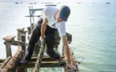 Nachdem alles bis auf die Pfähle entfernt war, lag der gesamte Fokus auf das „Ziehen“ dieser. Diese kraftzährende Arbeit wurde mit einer Gerüstkonstruktion auf einer Art Floß gemeistert, mit der die bis zu 2m im Boden steckenden Pfähle senkrecht nach oben herausgezogen werden konnten.